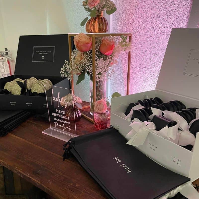 - 20 heel bags for your guests to put their high heels into once they are wearing Rescue Flats